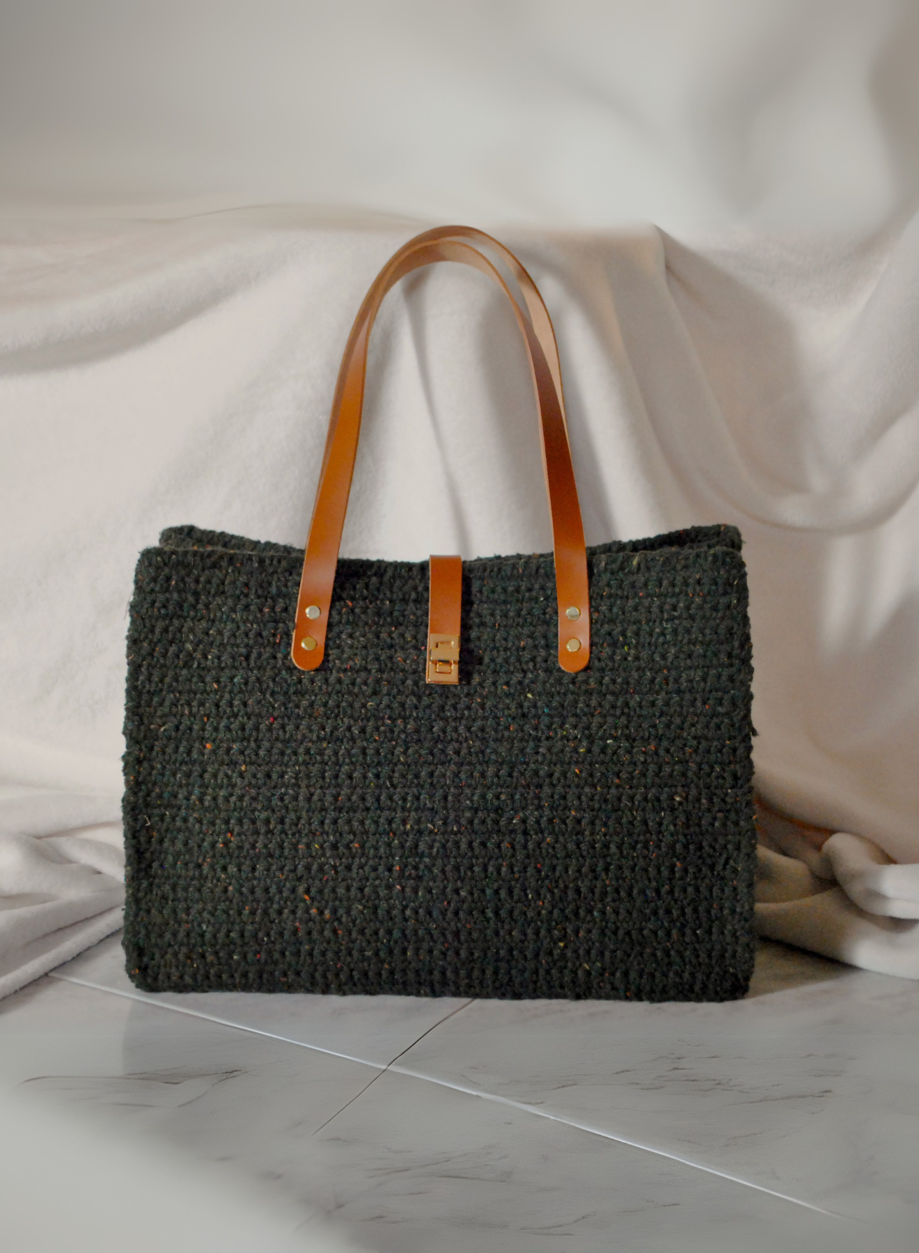 Eleganza sostenibile e artigianalità si incontrano in questa tote bag in cordino riciclato verde bosco, un accessorio versatile e raffinato pensato per chi ama lo stile e il rispetto per l’ambiente. I manici color tabacco, dal design essenziale, aggiungono un tocco di calore e contrasto, rendendola perfetta per accompagnarti in ogni occasione, dal lavoro al tempo libero.